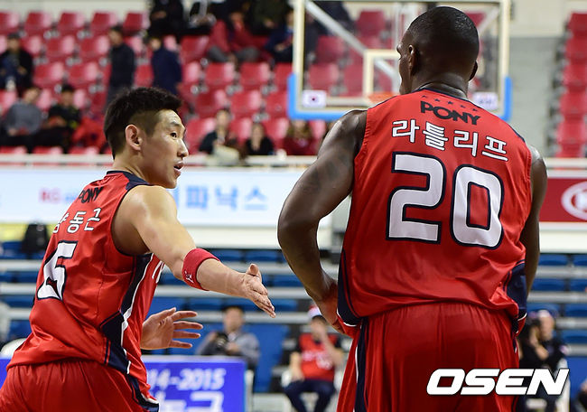 모비스 양동근과 라틀리프가 하이파이브를 하고 있다. / youngrae@osen.co.kr