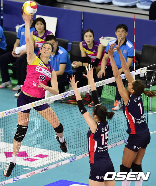 7일 오후 인천 계양체육관에서 열린 '2014-2015 프로배구 V리그 여자부' 흥국생명과 인삼공사의 경기, 2세트 흥국생명 루크가 스파이크를 시도하고 있다.