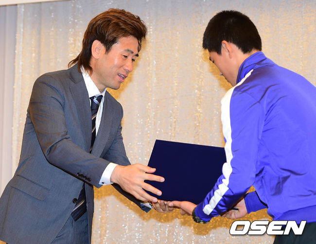 장학금 수여 대상자는 전국 초·중·고등학교 선수들 가운데 어려운 환경 속에서도 밝고 씩씩하게 생활하고 있는 33명의 선수들로 선발되었다. 선발된 장학생들에게는 150만원의 장학금과 고등학교 졸업 시까지 축구용품을 후원할 예정이다. / baik@osen.co.kr