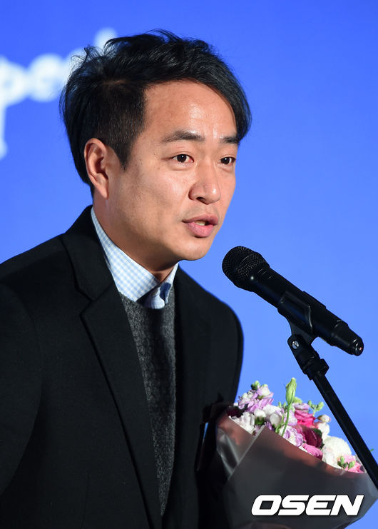 최우수지도자상을 수상한 최인철 인천현대제철축구단 감독이 수상소감을 말하고 있다.