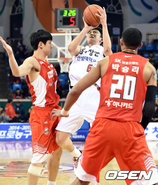 27일 오후 서울 잠실학생체육관에서 열린 '2014-2015 KCC 프로농구' 서울 SK와 안양 KGC의 경기, 1쿼터 안양 강병현이 슛을 시도하고 있다.