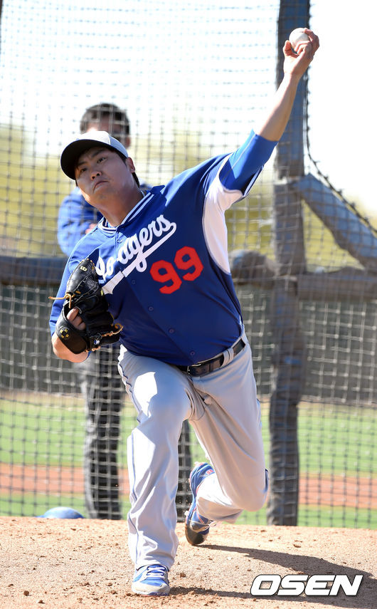 LA 다저스 류현진이 8일(한국시각) 미국 애리조나주 글렌데일 캐멀벡랜치에서 라이브 피칭을 소화했다.