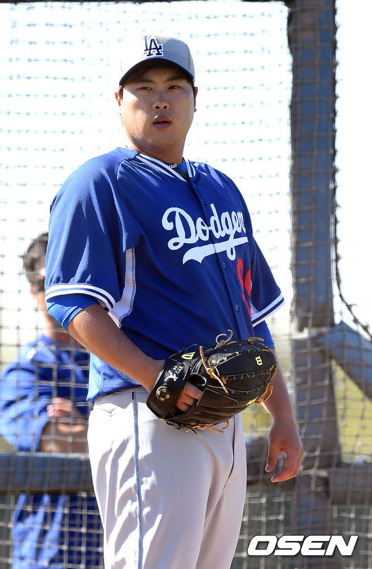 LA 다저스 류현진이 8일(한국시각) 미국 애리조나주 글렌데일 캐멀벡랜치에서 라이브 피칭을 소화했다.
