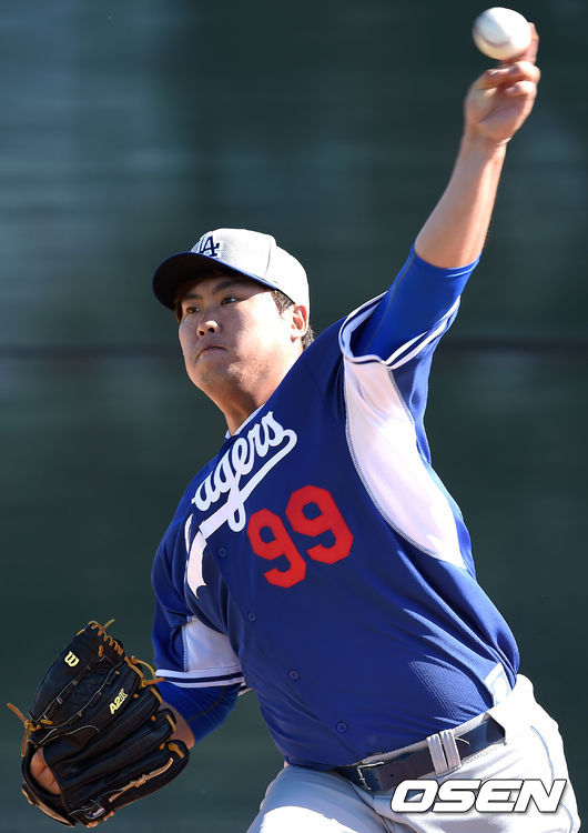 LA 다저스 류현진이 8일(한국시각) 미국 애리조나주 글렌데일 캐멀벡랜치에서 라이브 피칭을 소화했다.