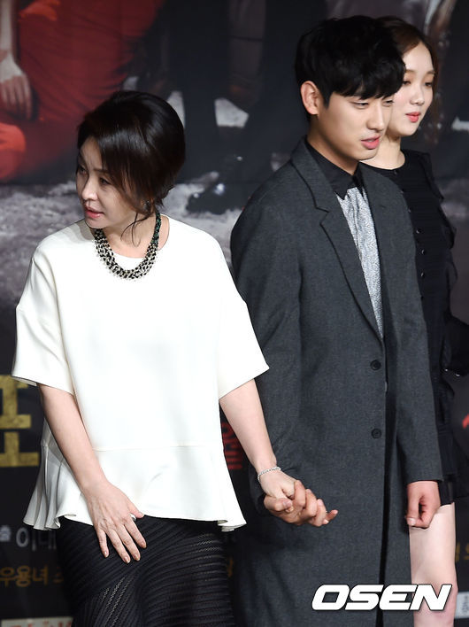 배우 김미숙과 윤박이 10일 오후 서울 마포구 MBC상암 신사옥에서 열린 MBC 새 주말특별기획 '여왕의 꽃' 제작발표회에서 포토타임을 갖고 있다.