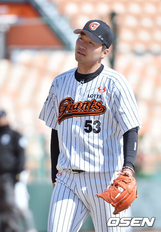 12일 오후 부산 사직구장서 ‘2015 타이어뱅크 KBO 리그’ 시범경기 롯데 자이언츠와 kt 위즈의 경기가 열렸다. 4회를 마친 롯데 선발 이상화가 아쉬운 표정으로 덕아웃으로 향하고 있다.