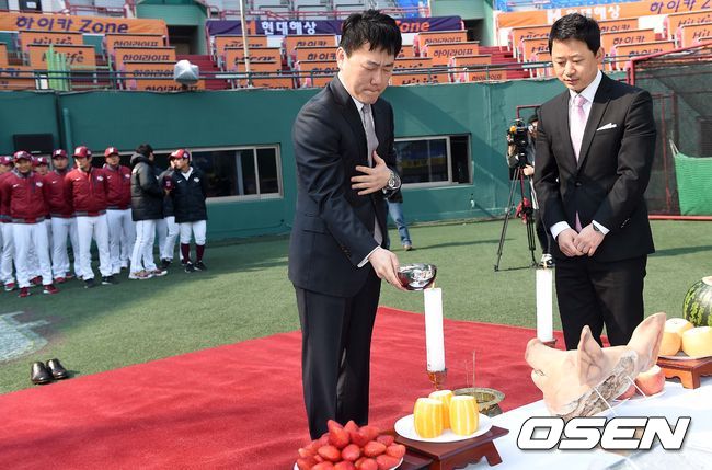 넥센 이장석 대표를 비롯한 관계자들이 고사를 지내고 있다.