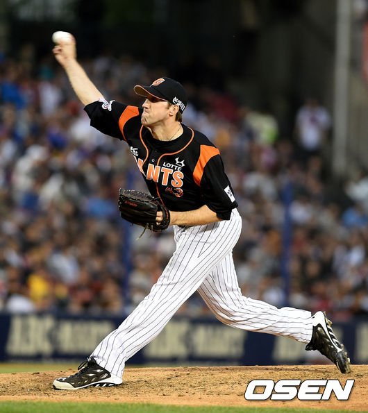 3회말 롯데 선발 린드블럼이 역투하고 있다.