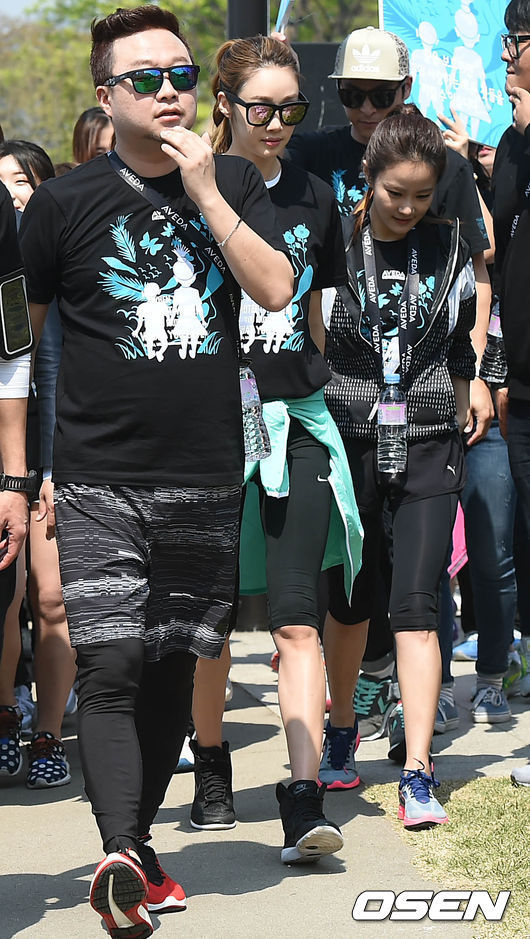 24일 오전 서울 중구 남산 백범광장에서 열린 아베다(AVEDA)의 2015년 물을 위한 걷기대회에서 개그맨 박휘순, 김지민, 배우 최여진이 행사에 참여하고 있다.
