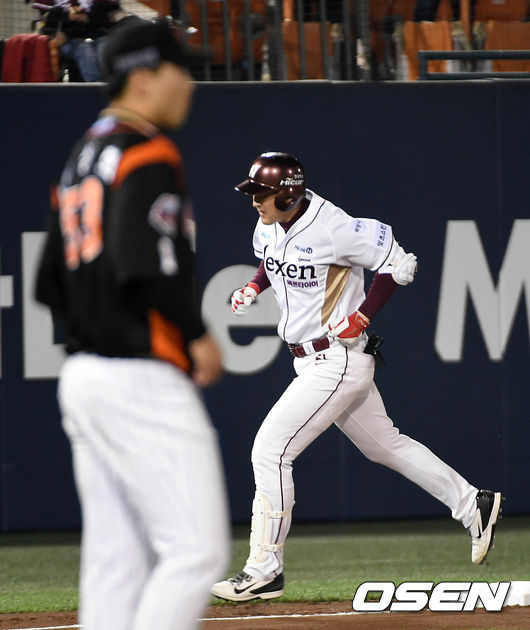 28일 오후 서울 목동야구장에서 열린 '2015 타이어뱅크 KBO 리그' 넥센 히어로즈와 롯데 자이언츠의 경기, 6회말 2사 주자 1루 넥센 유한준이 투런을 치고 주루하고 있다.