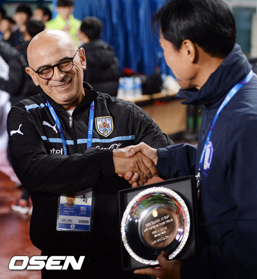 경기에 앞서 우루과이 알레한드로 가라이 감독이 안익수 감독과 악수를 나누고 있다 . / soul1014@osen.co.kr