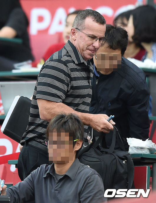 MLB 피츠버그 스카우트가 KIA 양현종을 살피기 위해 경기장에 들어서고 있다.