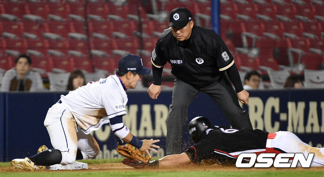 30일 오후 서울 잠실야구장에서 열린 '2015 타이어뱅크 KBO 리그' 두산 베어스와 kt 위즈의 경기, 6회초 무사 주자 1루 kt 김상현의 3루수앞 땅볼에 3루로 진루하던 1루주자 박경수가 3루에서 아웃당하고 있다.
