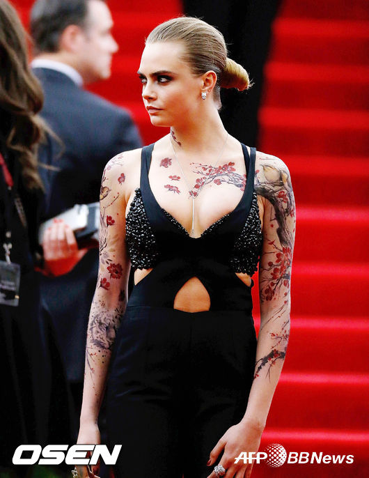 [OSEN=사진팀] 모델 카라 델레바인이 4일(현지시간) 뉴욕 맨해튼 메트로폴리탄 미술관(Metropolitan Museum of Art)에서 열린 ‘스루더루킹글래스(China: Through The Looking Glass)’의 오프닝을 기념하는 의상연구소 갈라쇼(Costume Institute Benefit Gala)에 참석해 레드카펫 행사를 갖고 있다.