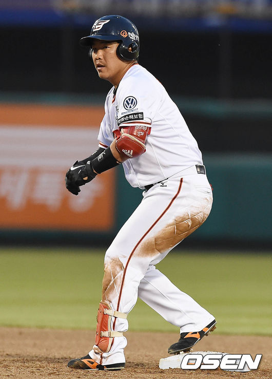 7일 오후 대전 한화생명 이글스 파크에서 열린 '2015 타이어뱅크 KBO 리그' 한화 이글스와 kt 위즈의 경기 3회말 1사 2루 정근우가 1타점 2루타를 치고 2루 베이스에 서 있다.