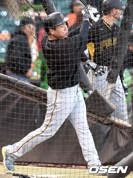 경기 시작을 앞두고 피츠버그 강정호가 타격 훈련을 하고 있다.