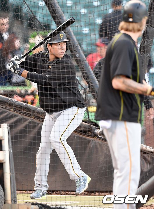 경기 시작을 앞두고 피츠버그 강정호가 타격 훈련을 하고 있다.