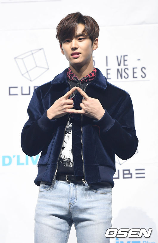 그룹 펜타곤 홍석이 6일 오후 서울 광진구 예스24 라이브홀에서 열린 두 번째 미니앨범 '파이브 센시스(Five Senses)' 쇼케이스에서 포토타임을 갖고 있다. /dreamer@osen.co.kr