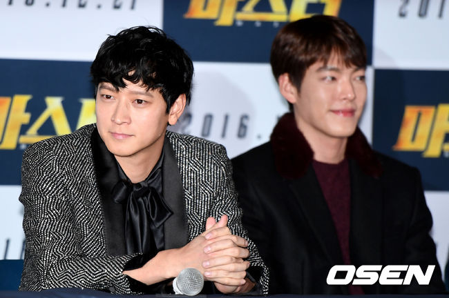 배우 강동원과 김우빈이 12일 오후 서울 행당동 CGV왕십리에서 열린 영화 '마스터'(감독 조의석) 언론시사회에 참석해 인사말을 준비하고 있다. /dreamer@osen.co.kr