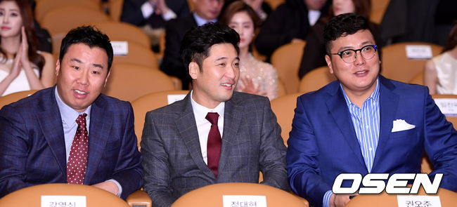 KIA 이범호, 넥센 이택근, 한화 김태균이 12일 오후 서울 삼성동 코엑스 오디토리움에서 열린 '2016 카스포인트 어워즈'에 참석해 대화를 나누고 있다. /dreamer@osen.co.kr