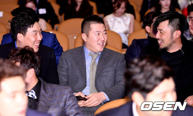 메이저리거 김현수, KIA 최형우, 한화 김경언이 12일 오후 서울 삼성동 코엑스 오디토리움에서 열린 '2016 카스포인트 어워즈'에 참석해 인사를 나누고 있다. /dreamer@osen.co.kr