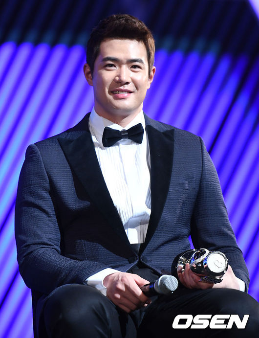 두산 김재환이 12일 오후 서울 삼성동 코엑스 오디토리움에서 열린 '2016 카스포인트 어워즈'에 참석해 타자 TOP3 상을 수상한 뒤 미소짓고 있다. /dreamer@osen.co.kr