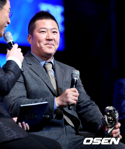 KIA 최형우가 12일 오후 서울 삼성동 코엑스 오디토리움에서 열린 '2016 카스포인트 어워즈'에 참석해 타자 TOP3 상을 수상한 뒤 소감을 전하고 있다. /dreamer@osen.co.kr