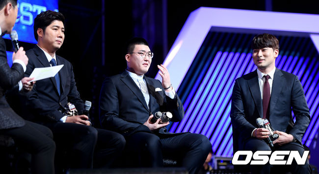 두산 장원준, 넥센 김세현, NC 임창민이 12일 오후 서울 삼성동 코엑스 오디토리움에서 열린 '2016 카스포인트 어워즈'에 참석해 투수 TOP3 상을 수상한 뒤 소감을 전할 준비를 하고 있다. /dreamer@osen.co.kr