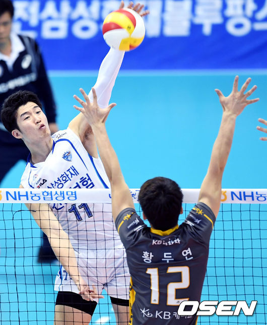 1일 오후 대전 충무체육관서 열린 2016-2017 NH농협 V리그 남자부 대전 삼성화재와 구미 KB손해보험의 경기, 1세트 삼성화재 김명진이 공격을 시도하고 있다. / eastsea@osen.co.kr