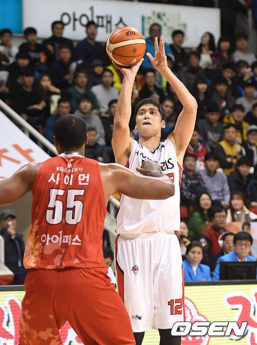 1일 오후 경기도 안양실내체육관에서 '2016-2017 KCC 프로농구' 안양 KGC와 울산 모비스의 경기 1쿼터 모비스 함지훈이 슛을 하고 있다. / youngrae@osen.co.kr