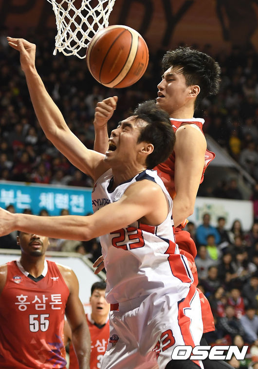 1일 오후 경기도 안양실내체육관에서 '2016-2017 KCC 프로농구' 안양 KGC와 울산 모비스의 경기 2쿼터 KGC 문성곤이 모비스 이지원의 레이업을 슛블록으로 막아내고 있다. / youngrae@osen.co.kr