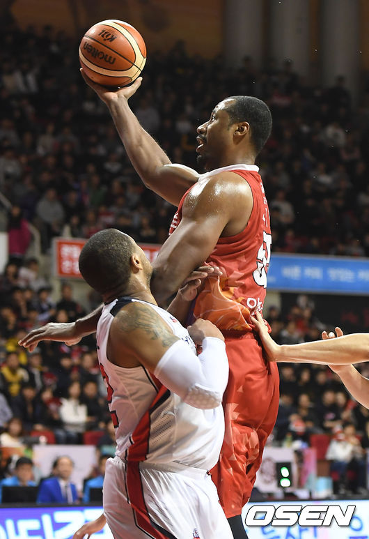1일 오후 경기도 안양실내체육관에서 '2016-2017 KCC 프로농구' 안양 KGC와 울산 모비스의 경기 4쿼터 KGC 사이먼이 슛을 하고 있다. / youngrae@osen.co.kr