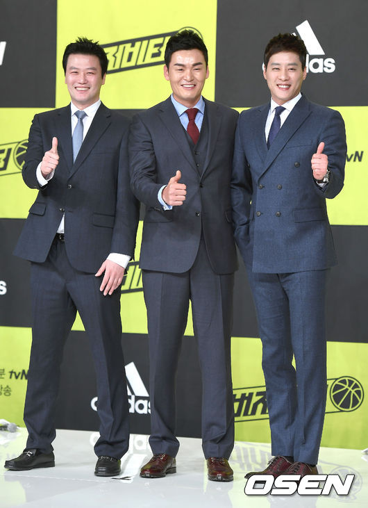 김훈, 양희승, 우지원 감독이 2일 오후 서울 영등포 타임스퀘어 아모리스홀에서 열린 tvN '버저비터' 제작발표회에 참석해 포토타임을 갖고 있다. / youngrae@osen.co.kr