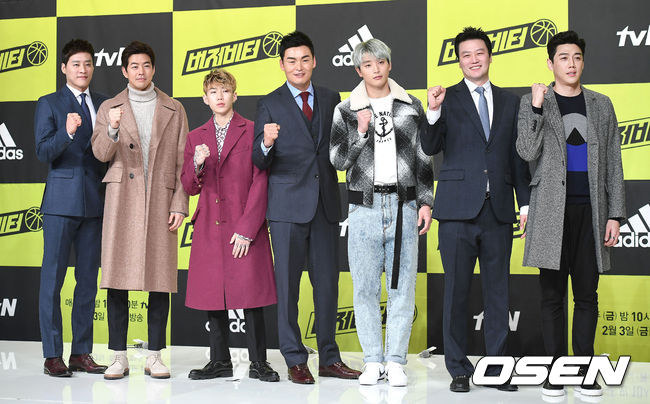 우지원, 이상윤, 박재범, 양희승, 정진운, 김훈, 김혁이 2일 오후 서울 영등포 타임스퀘어 아모리스홀에서 열린 tvN '버저비터' 제작발표회에 참석해 포토타임을 갖고 있다. / youngrae@osen.co.kr