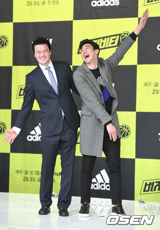 김훈 감독과 김혁이 2일 오후 서울 영등포 타임스퀘어 아모리스홀에서 열린 tvN '버저비터' 제작발표회에 참석해 포토타임을 갖고 있다. / youngrae@osen.co.kr