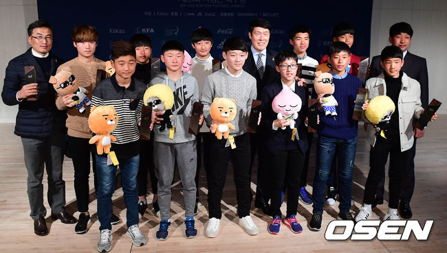 2일 오후 경기도 성남시 판교 스타트업 캠퍼스에서 열린 제29회 차범근 축구상에서 수상자들이 차범근과 함께 기념촬영을 하고 있다. / baik@osen.co.kr