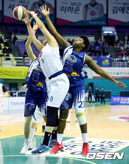 2일 오후 경기도 부천시 부천체육관에서 진행된 2016-2017 삼성생명 여자프로농구 KEB하나은행과 신한은행의 경기, 1쿼터 신한은행 윌리엄즈-KEB하나은행 어천와가 리바운드 경쟁을 펼치고 있다. / eastsea@osen.co.kr