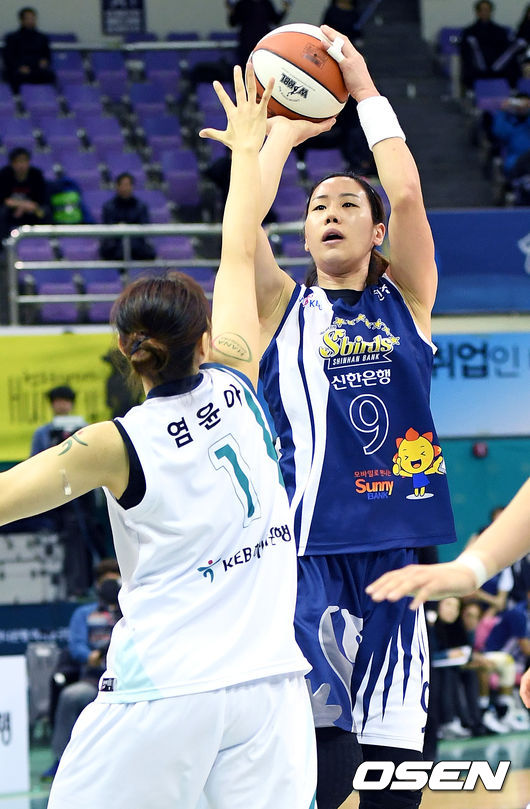 2일 오후 경기도 부천시 부천체육관에서 진행된 2016-2017 삼성생명 여자프로농구 KEB하나은행과 신한은행의 경기, 1쿼터 신한은행 곽주영이 3점 슛을 시도하고 있다. / eastsea@osen.co.kr