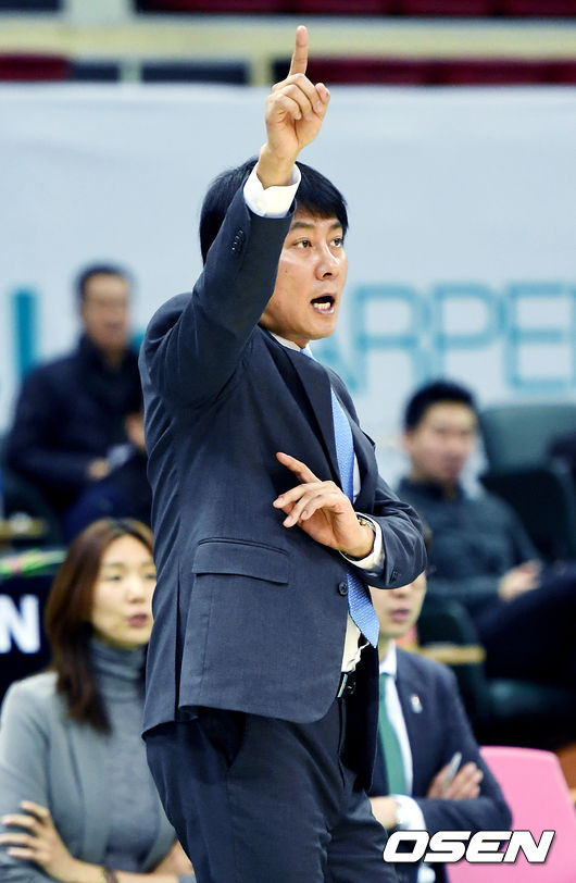 2일 오후 경기도 부천시 부천체육관에서 진행된 2016-2017 삼성생명 여자프로농구 KEB하나은행과 신한은행의 경기, 1쿼터 KEB하나은행 이환우 감독이 선수들에게 지시를 내리고 있다. / eastsea@osen.co.kr