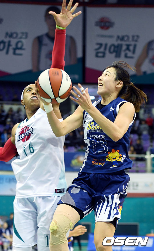 2일 오후 경기도 부천시 부천체육관에서 진행된 2016-2017 삼성생명 여자프로농구 KEB하나은행과 신한은행의 경기, 2쿼터 신한은행 김단비가 골밑 슛을 시도하고 있다. / eastsea@osen.co.kr