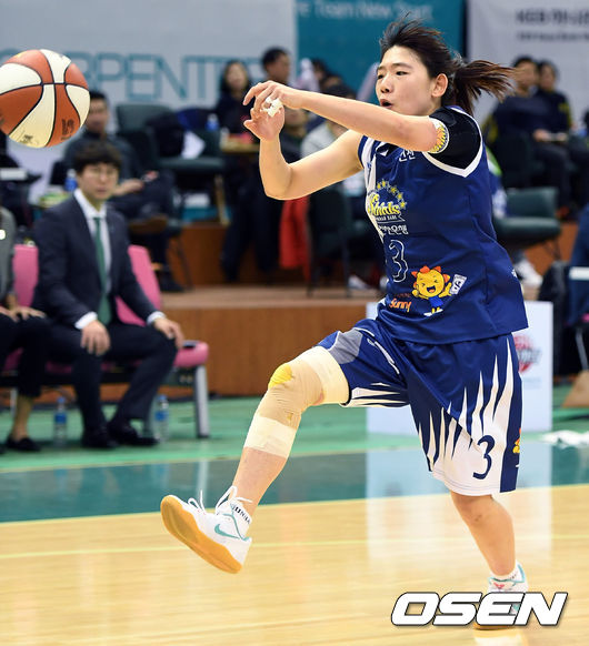 2일 오후 경기도 부천시 부천체육관에서 진행된 2016-2017 삼성생명 여자프로농구 KEB하나은행과 신한은행의 경기, 2쿼터 신한은행 김형경이 중원에서 넘어온 공을 잡지 못하며 속공 찬스를 놓치고 있다. / eastsea@osen.co.kr