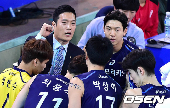 2일 오후 충남 천안시 유관순체육관에서 열린 2016-2017 NH농협 V-리그 현대캐피탈과 우리카드의 경기 1세트 우리카드 김상우 감독이 작전타임을 갖고 있다. / baik@osen.co.kr