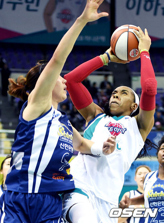 2일 오후 경기도 부천시 부천체육관에서 진행된 2016-2017 삼성생명 여자프로농구 KEB하나은행과 신한은행의 경기, 3쿼터 KEB하나은행 쏜튼이 골밑 슛을 시도하고 있다. / eastsea@osen.co.kr