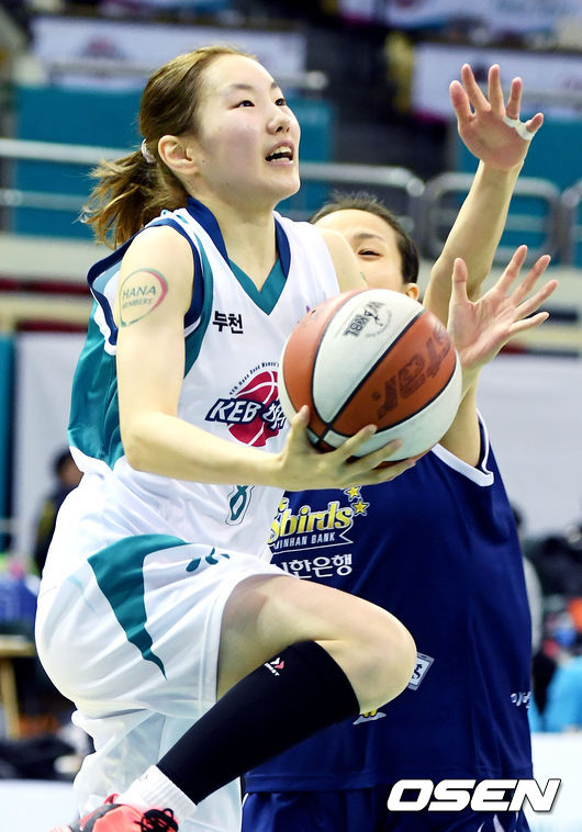 2일 오후 경기도 부천시 부천체육관에서 진행된 2016-2017 삼성생명 여자프로농구 KEB하나은행과 신한은행의 경기, 4쿼터 KEB하나은행 김지영이 골밑 슛을 시도하고 있다. / eastsea@osen.co.kr