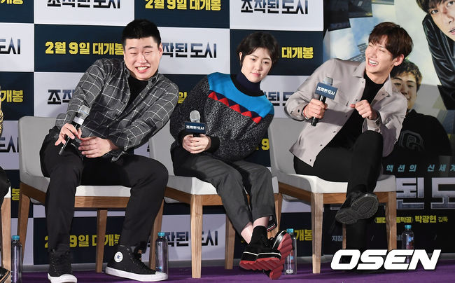 배우 안재홍, 심은경, 지창욱이 2일 오후 서울 삼성동 코엑스 메가박스에서 진행된 영화 '조작된 도시' 쇼케이스에 참석해 포토타임을 갖고 있다. / youngrae@osen.co.kr