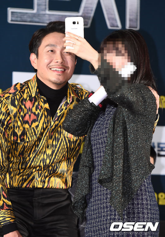 배우 오정세가 2일 오후 서울 삼성동 코엑스 메가박스에서 진행된 영화 '조작된 도시' 쇼케이스에 참석해 이벤트에 당첨된 여성팬과 셀카를 찍고 있다. / youngrae@osen.co.kr