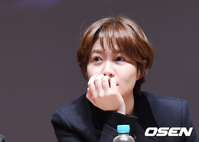 배우 심은경이 18일 오후 서울 롯데시네마 월드타워에서 진행된 영화 '조작된 도시' 릴레이 GV에 참석해 팬들과 이야기를 나누고 있다. / youngrae@osen.co.kr