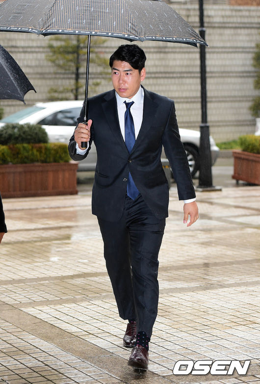 음주 뺑소니 사고를 낸 혐의로 기소된 강정호가 22일 오후 서울 서초구 서울중앙지방법원에서 열린 첫 공판에 출석하고 있다. / baik@osen.co.kr