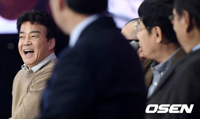 요리연구가 백종원과 방송인 이경규가 22일 오후 서울 중구 장충체육관에서 열린 'MBN Y 포럼 2017'에 참석해 메시지를 전하고 있다. /dreamer@osen.co.kr