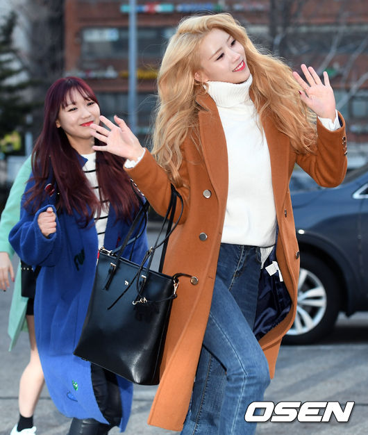 러블리즈 류수정-이미주가 3일 오전 서울 영등포구 여의도동 KBS 신관공개홀에서 진행된 '뮤직뱅크' 리허설에 참석하고 있다. / eastsea@osen.co.kr